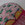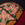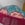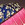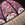 Papier japonais style art déco à fleurs roses sur fond bleu en haut et fleurs dorées sur fond rose en bas. Frange fuchsia.
