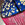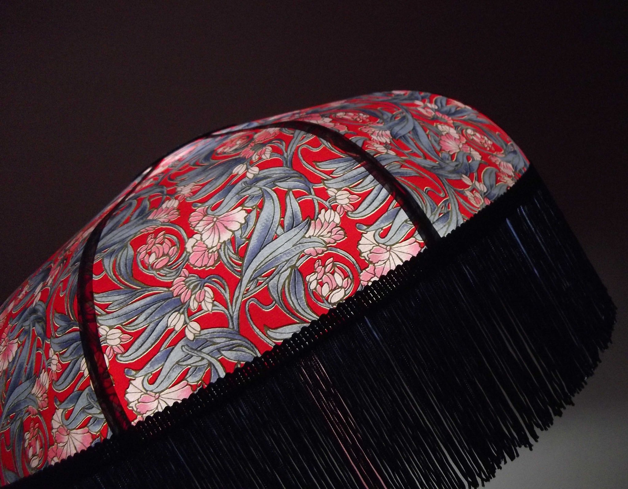 Papier japonais style art nouveau sur fond rouge, frange bleu marine.