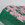 Papier japonais fleurs roses et blanches sur fond vert. Frange fuchsia.