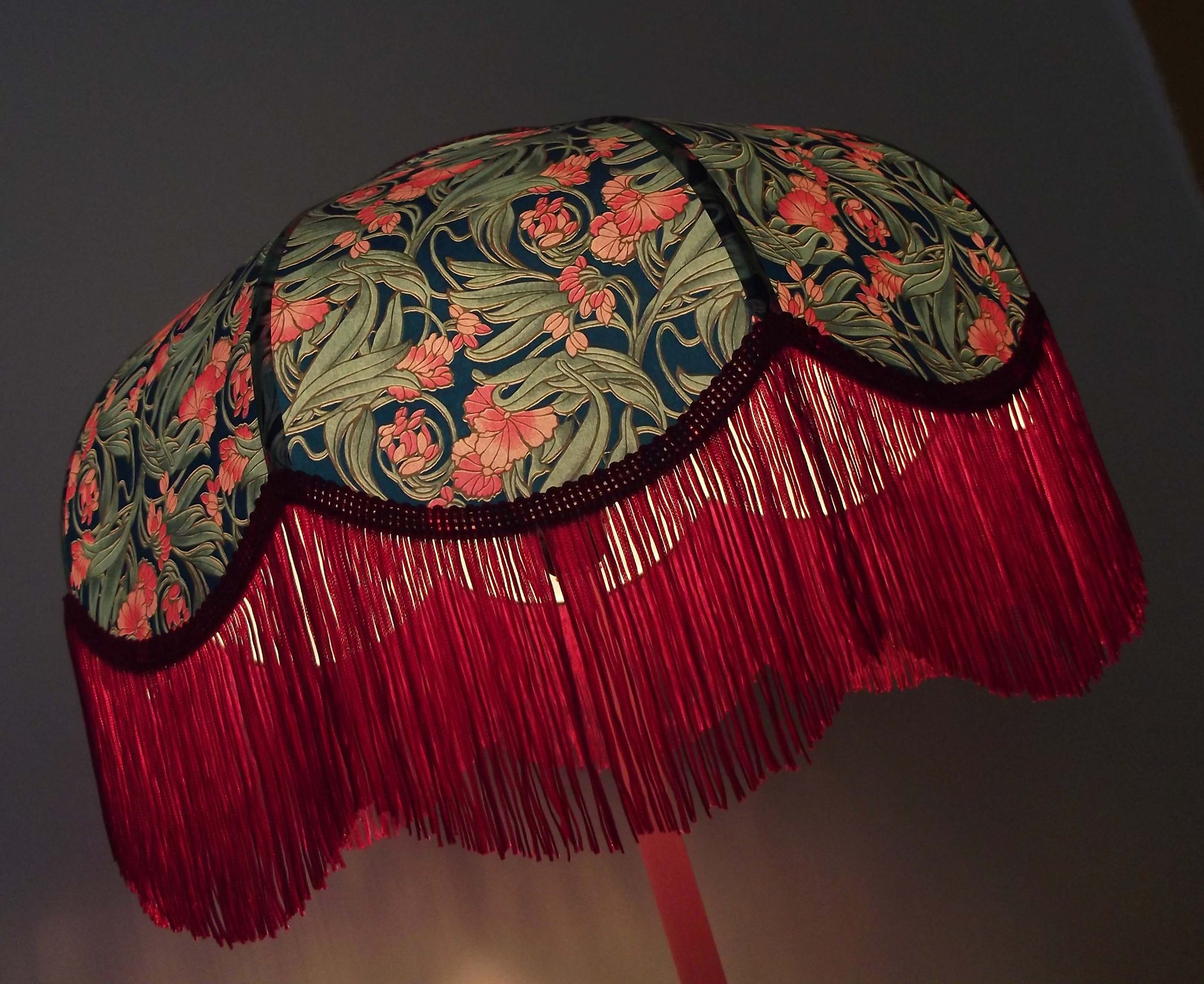 + 10 cm de frange. Douille E27, 40 w max. Sur commande, envoi sous 15 jours.