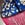 Suspension en papier japonais à fleurs sur fond bleu. Frange fuchsia.